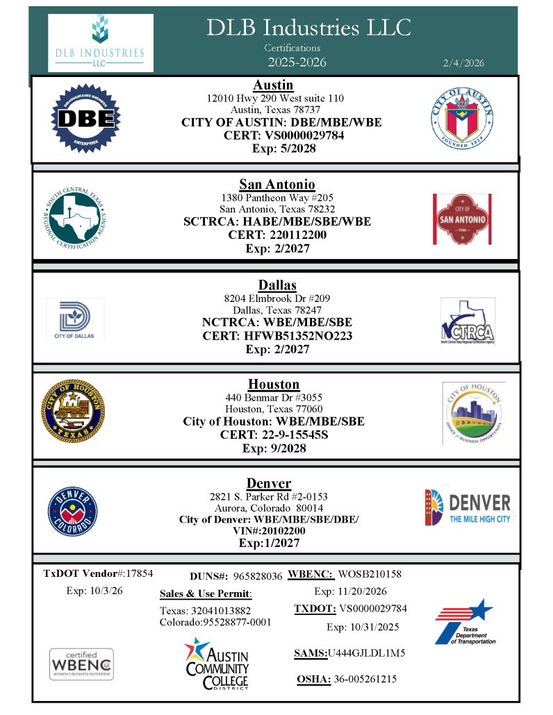 DLB Industries LLC, proudly works with or is affiliated with these fine organizations as a vendor, strategic partner, supplier, contractor or sub-contractor manager & advisor.